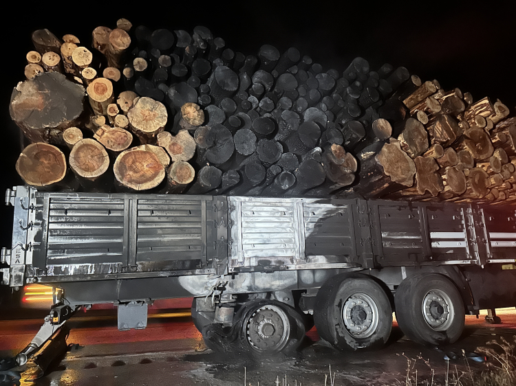 Lastikleri tutuşan tomruk yüklü tırı yanmaktan itfaiye kurtardı