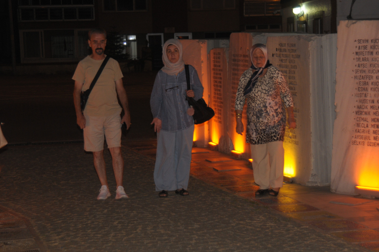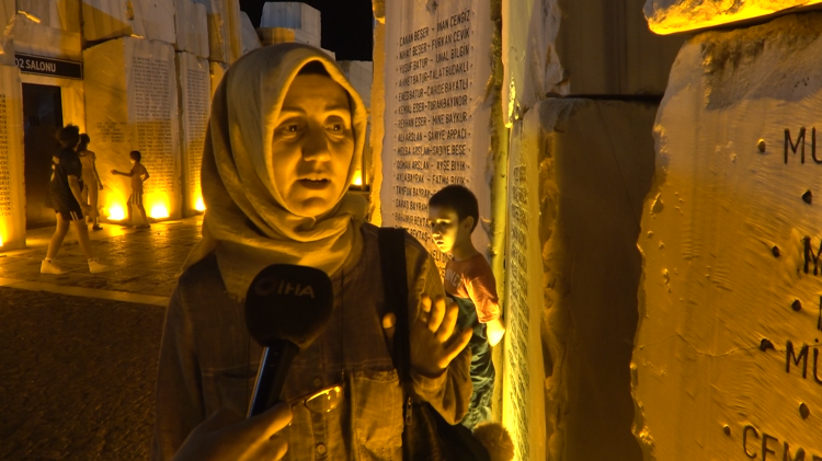 "Uzaktan baktım bina yok. Kendi kendime, ‘annemlerin ev nereye gitmiş?’ dedim. Eşim de yanımda. Deliler gibi koşuyorum. Kendimi bilmiyorum o anda şoka girmişim. Eşimin anlattıkları bunlar. Binanın önüne geldiğimde bizim bina, Ferah Apartmanı, beyaz köşk apartmanı, hepsi birbirinin üzerine düşmüş. Şaşkınlıkla orada ben anne, baba diye bağırmaya başladım. O an ne yaşadığımı bilmiyorum. Eşimin anlattıkları, ‘çok bağırıyordun. Şoka girmiştin. Sana 2 tokat attım’ dedi. Ondan sonra bir el arkamdan dokundu. Karşı apartmandan bir komşu. Amca bana, ‘Kızım bağırma, ağlama, annenler çıktı arka parktalar’ dedi bana. Parka gittim, insanları gördüm. Herkes bir yerde yatıyordu. Annem göçük altından çıkmış. Üzerini örtmüşler. Kardeşim üzerinde mont yaz gününde. Ne bulduysa giymişler. Babam ayakları yaralı. Onları orada gördüğümde o kadar çok sevindim ki. Baba kızım dedi, evde olsaydın belki seni kaybedecektim çünkü bina tamamen gitmiş benim odam tamamen çökmüştü. Orada ambulanslar, siren sesleri, helikopterler. İnsanları bağırmaları, feryatları. Bu anlatılmaz."