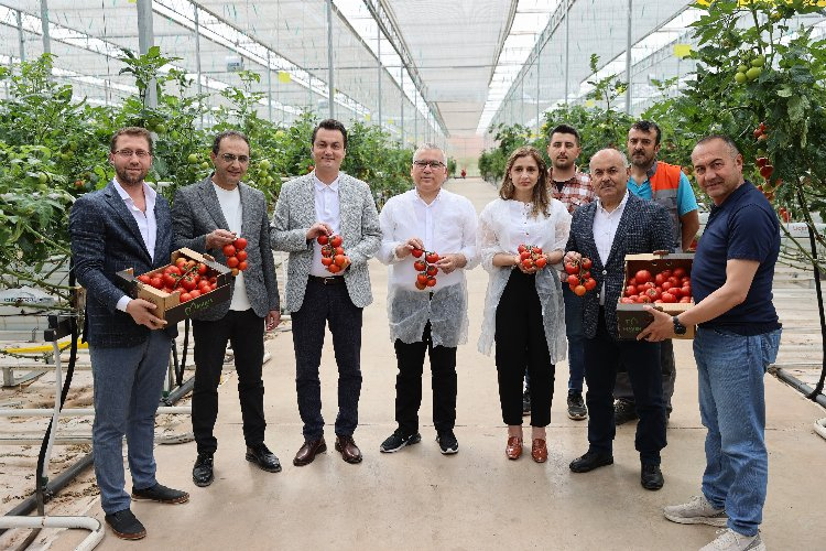 50 dönümlük alana kurulan Hollanda usulü topraksız cam serada üretilen domatesler Hollanda, Almanya ve İtalya'ya gönderiliyor.