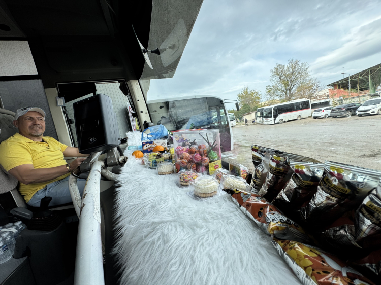 Edirne'de şehir içi ulaşımı sağlayan minibüs şoförü Mesut Coşkun, yolcularına çeşitli meyve ve şekerlemeler ikram etmesiyle dikkat çekiyor. Minibüsün ön kısmını adeta mini markete dönüştüren Coşkun, çocukların en sevdiği şoför olarak tanınmaya başladı.