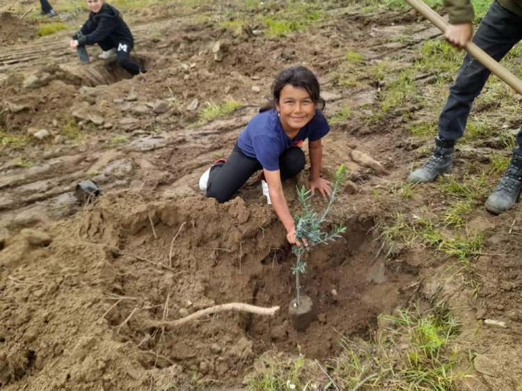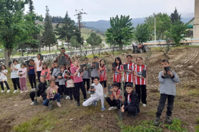 Manisa'nın Sarıgöl ilçesinin Sığırtmaçlı ilkokulu bahçesine öğretmen ve öğrencilerle birlikte Tirilye türü zeytin dikimi yaptı.