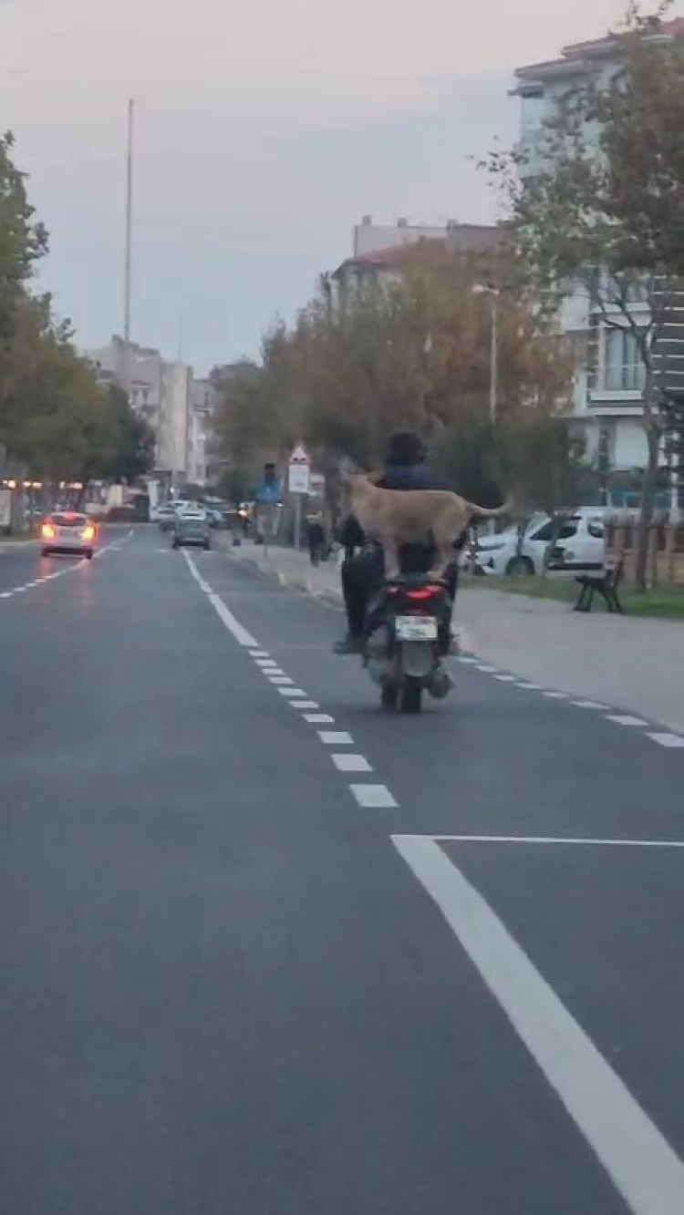 Cadde üzerinde seyir halinde bulunan bir motosikletin üzerinde artçı olarak binen köpek görenleri hem şaşırttı hem de neşelendirdi. Motorla uzun süre seyir halinde olan köpek bir başka araçta bulunan yolcu tarafından cep telefonu kamerasıyla kaydedildi.