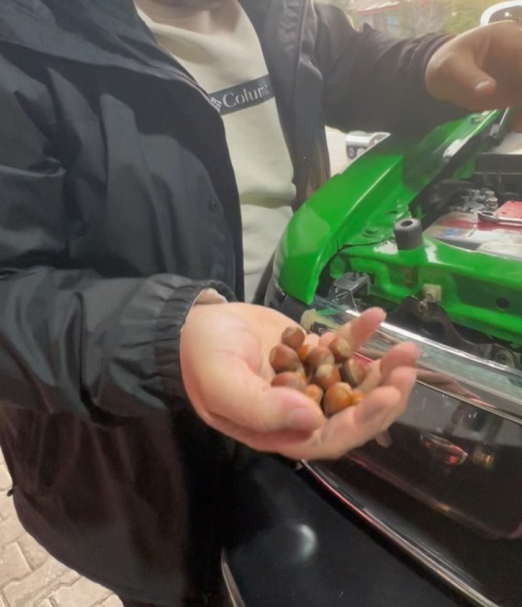 Performans kaybı nedeniyle bakıma alınan aracın hava filtresi açıldığında ise ilginç bir manzarayla karşılaşıldı. Hava filtresinin içinde, temiz ve zarar görmemiş halde 1 kiloya yakın fındık bulundu. Yapılan incelemede, bir sincabın araçtaki geniş hava girişlerinden içeri girerek hava filtresini kendisine kışlık erzak deposu haline getirdiği anlaşıldı.