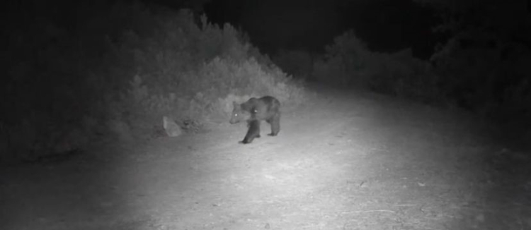 Bir ayının doğal ortamında yaşamı da fotokapan kamerasına yansıdı. Görüntülerde, ayının bölgede yiyecek aradığı anlar görülüyor.