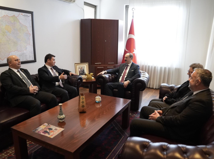 Başkan Erkan Aydın, Türkiye Üsküp Büyükelçisi Fatih Ulusoy ile görüşmek için Osmangazi Belediyespor Başkanı Fatih Karayılan, Başkan Yardımcısı Tolga Kornoşor ve KKTC’den Gencay Eroğlu ile birlikte büyükelçiliği ziyaret etti.