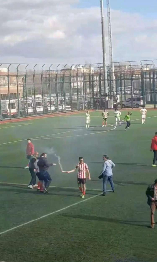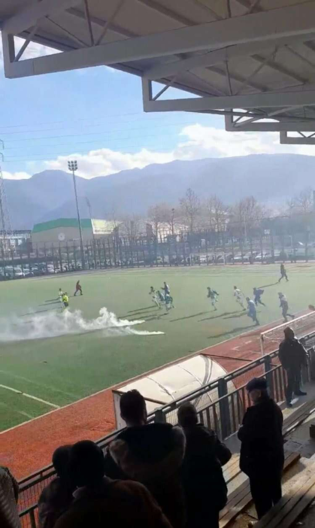 Tribünde rakip takımdan gelen taraftarların olduğunu zanneden holiganlar bir anda kavgaya tutuşup hem sahaya, hem de tribünlere torpil ve meşale attı.