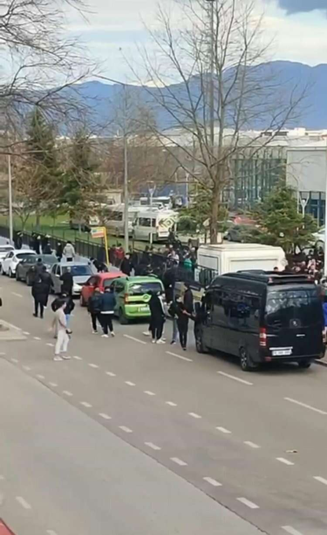 Artan kalabalığın üzerine bölgeye sevk edilen polis ekibi olayları yatıştırırken, taraftarların kavgaya tutuştuğu anlar ise kameraya anbean yansıdı.