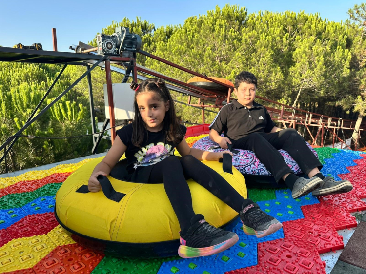 3 yaş üzeri herkesin kullanımına uygun kaydırak, kısa sürede korunun en gözde noktası olurken, eğlence dolu anlar dron ile görüntülendi.