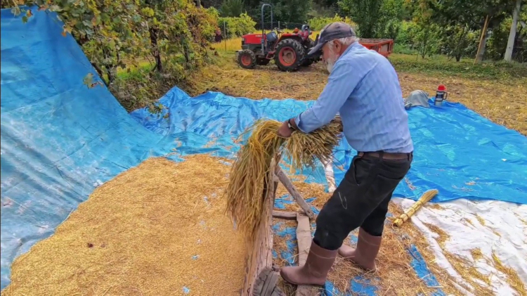 Artvin ile Erzurum sınırında yer alan Yusufeli ilçesinde pirinç hasadı tüm hızıyla devam ediyor.