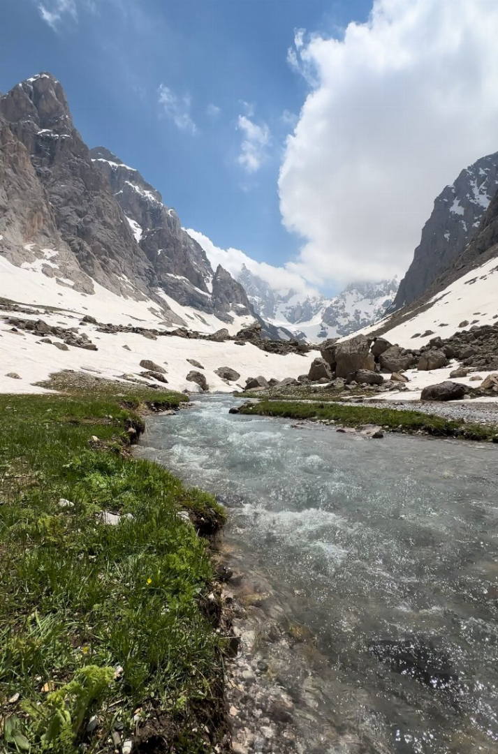 "Cennet ve Cehennem Vadisi'ndeki görüntüler kesinlikle Alpler'i aratmıyor", diyen doğasever Ahmet Güldal, “Bu hafta rotamız buzullar, yani Cennet ve Cehennem Vadisi oldu. Orada yürüyüş yaptık ve hava şartlarının çok zor olduğunu biliyorduk. Orada gerçekten muazzam bir atmosfer ile karşılaştık. Hemen hemen doğanın tüm renkleri orada mevcut ve o görsel şölen inanılmaz diyebilirim. Bölgede telefonumu sabit bırakarak ve orada tüm anı saatler içerinde çektim ve saniyelere indirdim ama inanılmaz bir doğa atmosferi çıktı. Alpler’i asla aratmayacak şekilde. Biz de o anlara şahit olduk ve yaşadık. İnan bu güzellikleri başka bir yerde yaşamazsınız. Düşün hala metrelerce kar yığınları duruyor. Başka ülkeye gidip bunu görmeye gerek yok, gelip Hakkâri’de yaşayın” dedi.