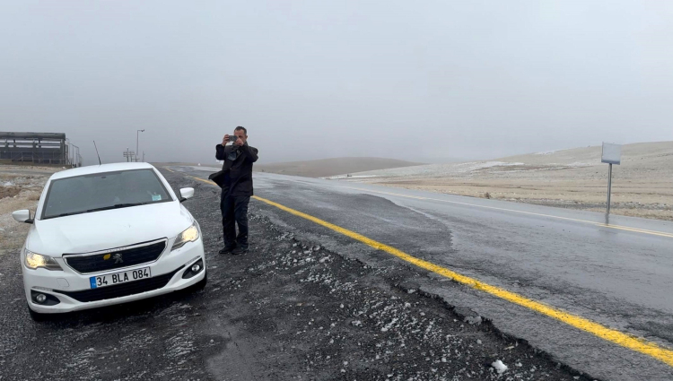 Sahara Geçidi'nde etkili olan kar ve tipi, sürücülere zor anlar yaşattı
