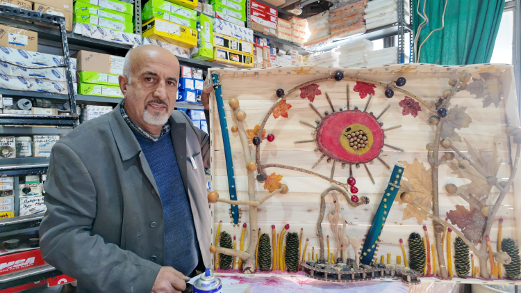 Van'ın Erciş ilçesinde yaşayan oto yedek parça ustası Sami Demir, doğadan topladığı ağaç ve taş gibi nesneleri sanat eserine dönüştürüyor.