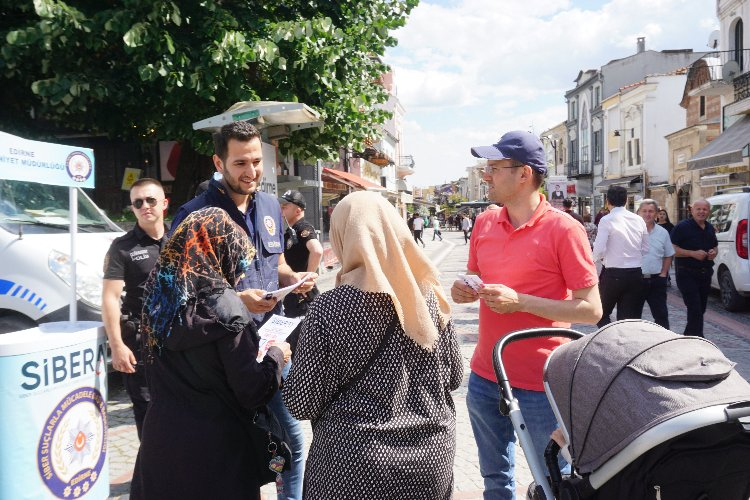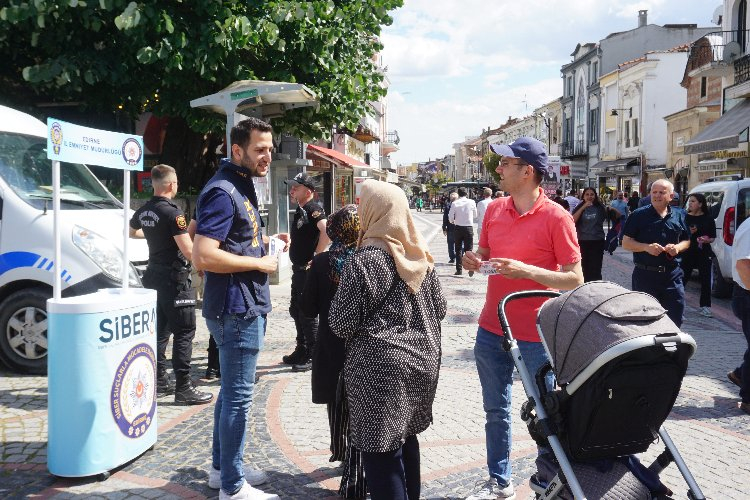 Edirne İl Emniyet Müdürlüğü Siber Suçlarla Mücadele Şubesi ekipleri, vatandaşları bilgilendirmeye devam ediyor. Kahvehanelerde, okullarda ve mahallelerde bilgilendirme çalışması yapan ekipler, bu kez Saraçlar Caddesi'nde stant açarak vatandaşlara bilgilendirici broşür dağıttı.