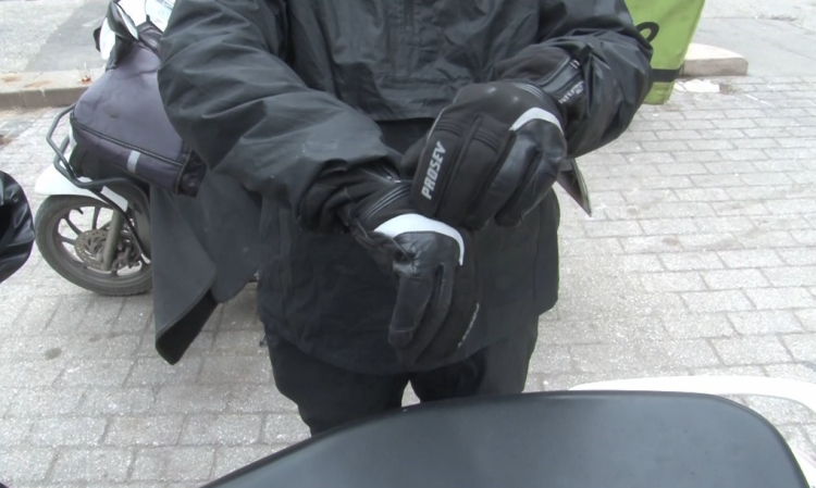 "Kışın motor sürmek zaten zor bir şey. Üstüne bir de kuryelik yapıyorsanız, sipariş yetiştirmeye çalıştığınız için ekstradan zorluk çıkıyor. Özellikle sabah ve gece saatlerinde aşırı bir soğuk oluyor. O soğuktan korunmak için kat kat giyinmemiz gerekiyor. Korumalı ekipmanlarımızı giyiyoruz ama onlar bile yetmiyor çoğu zaman. Soğuk hava şartlarında, özellikle gece saatlerinde yerlerde buzlanma oluşuyor. Hangi lastiği takarsak takalım, her türlü o buzda kayıp düşüyoruz, zarar görüyoruz. Ekipman giysen de her türlü canın yanıyor. Sipariş yetiştirmeye çalışırken kaza yapıyoruz, soğuktan dolayı hasta oluyoruz. Şu an bile hastayım mesela. Merdiven çıktığımızda terliyoruz, ısınıyoruz ve apartmandan çıkıp başka bir yere gittiğimizde ıslak oluyoruz. Eve gidip üstümüzü çıkardığımızda da kıyafetlerimiz ıslak oluyor."