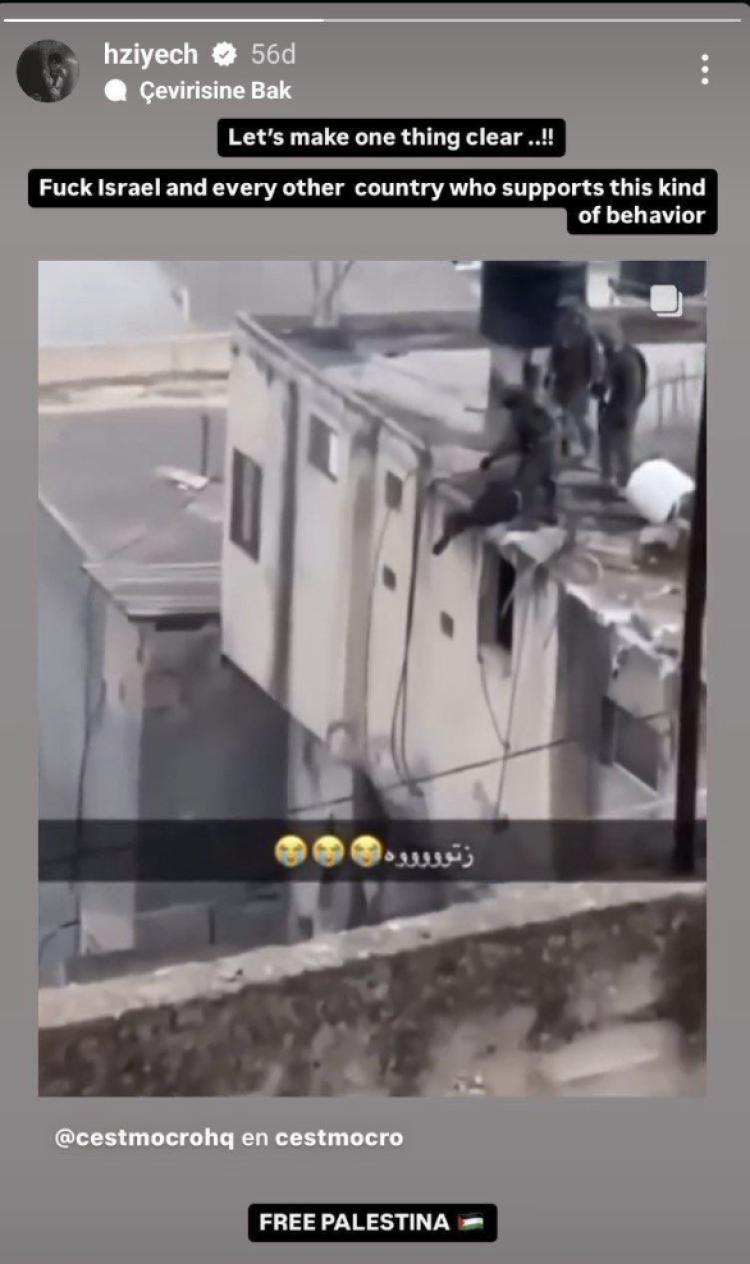 Galatasaray’ın yıldız futbolcusu Hakim Ziyech resmî sosyal medya hesabı üzerinden İsrail zulmüne büyük tepki gösterdi.