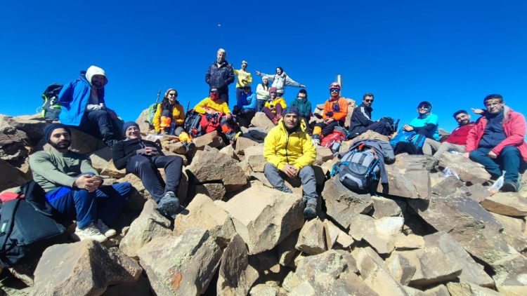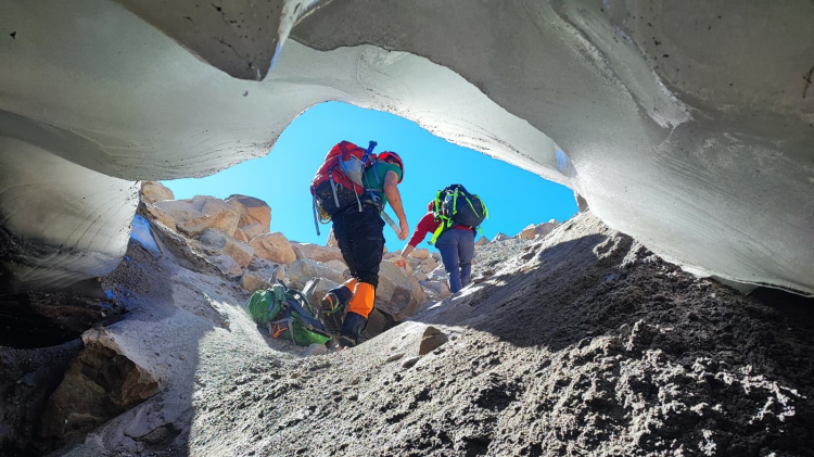 Dağcılar, başarılı bir zirve tırmanışının ardından, dağın zirvesinde ve krater çevresinde bulunan eriyen buzulları ziyaret etti.