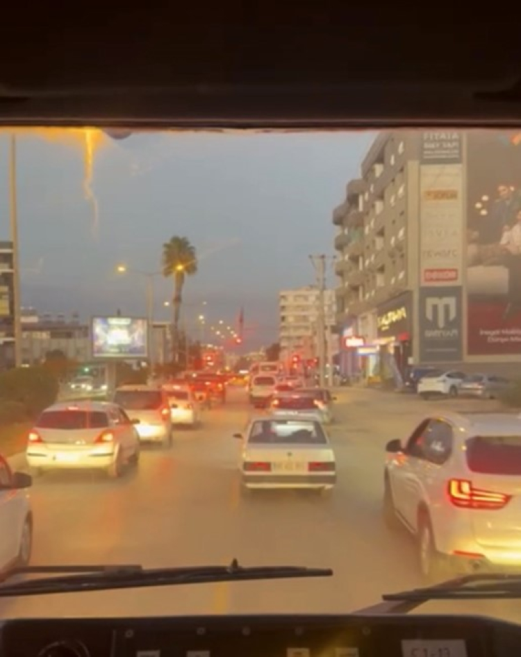O anlar, itfaiye aracındaki bir personelin cep telefonu kamerasına yansıdı.