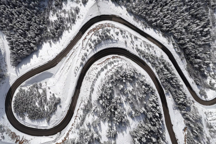 Kıvrım kıvrım yolları ve dik rampalarıyla sürücülerin 'korkulu rüyası' olan geçitte, karın oluşturduğu eşsiz manzara havadan görüntülendi.