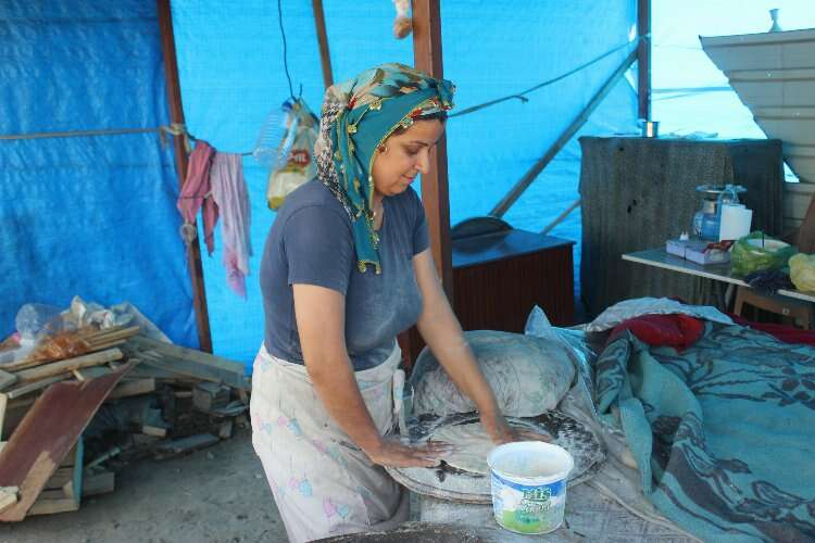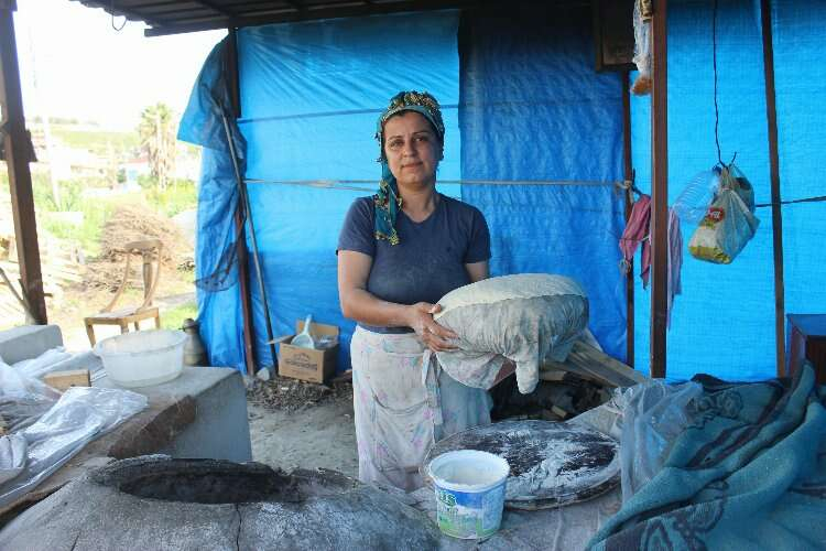 Hava sıcaklığının 30 dereceyi geçtiği bu günlerde tandır ekmeği yaparak para kazanan depremzede Gülistan Mutlu, artan sıcaklara rağmen hem orucunu tutuyor hem de işini sürdürüyor.