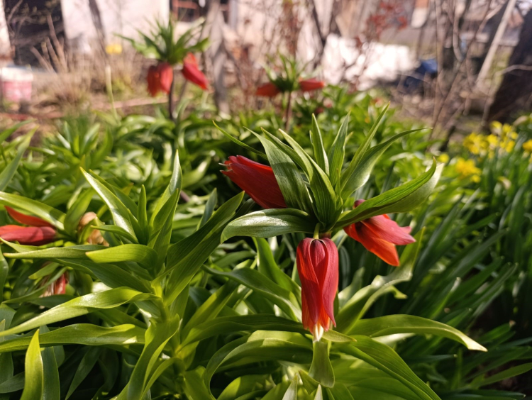 Halk arasında "Ağlayan Gelin" olarak bilinen ters lale, mahallede birçok evin bahçesinde göz alıcı bir şekilde açarak adeta görsel şölen sunuyor.