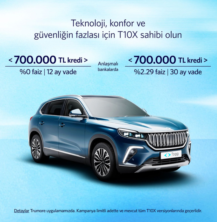 1. Seçenek: T10X modeli için 12 ay vade, sıfır faiz 700 bin TL