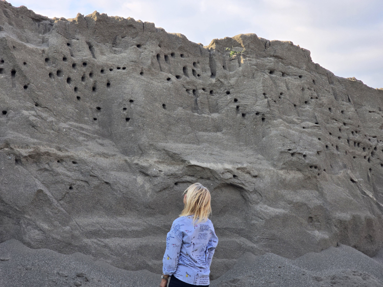 Fatma Esin Tuna; "Dakikalardır izlediğim bir görüntü vardı onu sizler için çekiyorum. Burada gördüğünüz kumların içerisinde küçük yuvalar var. Kırlangıçlar adeta buraya site inşa etmişler. Çok güzel komşuluk yapıyorlar. Yuva kurmuşlar bu durum belki insanlara da güzel örnek olabilir" dedi.