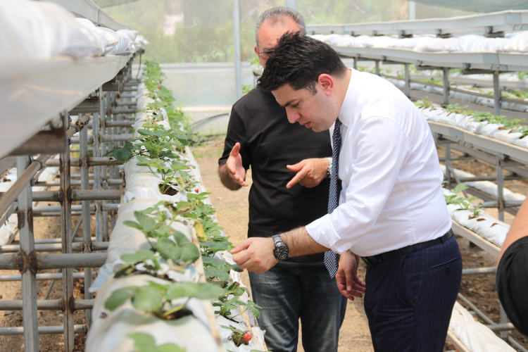 İlçe Kaymakamı Tarık Orhan'ın inceleme bulunduğu sera hakkında konuşan Ziraat Yüksek Mühendisi Yaşar Özekin, "Topraklı üretimde bir dekarda 5 bin çilek elde edilirken, topraksız üretimde bu rakam bir dekarda 27 bin ile 30 bin çileğe ulaşıyor" dedi.