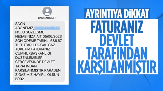 Ücret alınmayan doğalgaz faturalarındaki mesaj