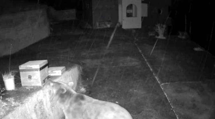 Gündüz saatlerinde vaşak, akşam saatlerinde ise ayı bir evin güvenlik kameralarına yakalandı.