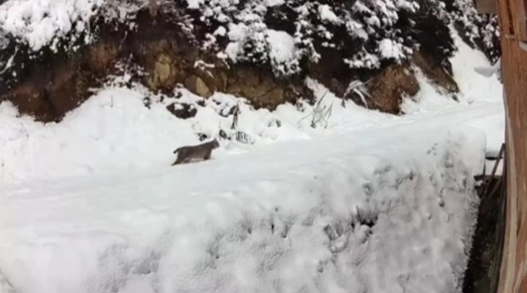 Trabzon'un Çaykara ilçesine bağlı Yeşilalan Mahallesi sınırları içinde bulunan Kama Yaylası'nda kış mevsimiyle birlikte yağan karın ardından yaban hayvanları evlerin çevresinde yiyecek bir şeyler aradı.