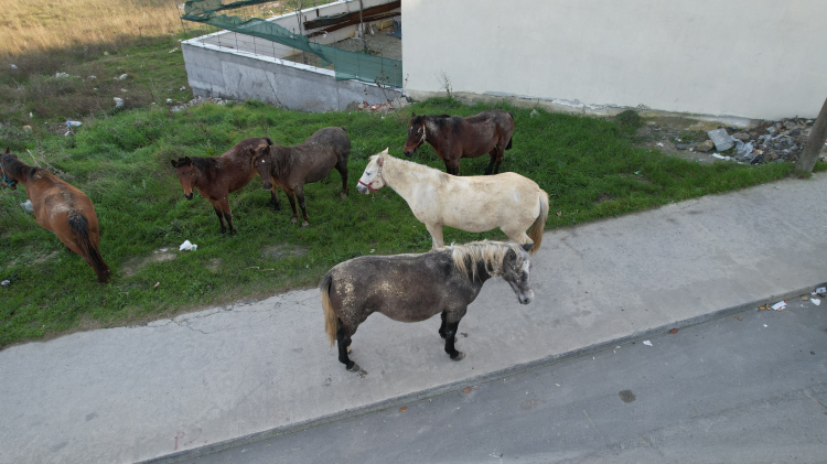 Yaz aylarında kullanıldıktan sonra sokağa bırakılan atlar havadan görüntülendi