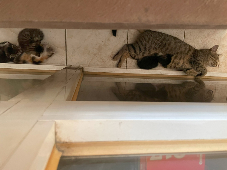 Yeni doğum yapan anne kedi, yavrularını ağzıyla bir ofise taşıdı