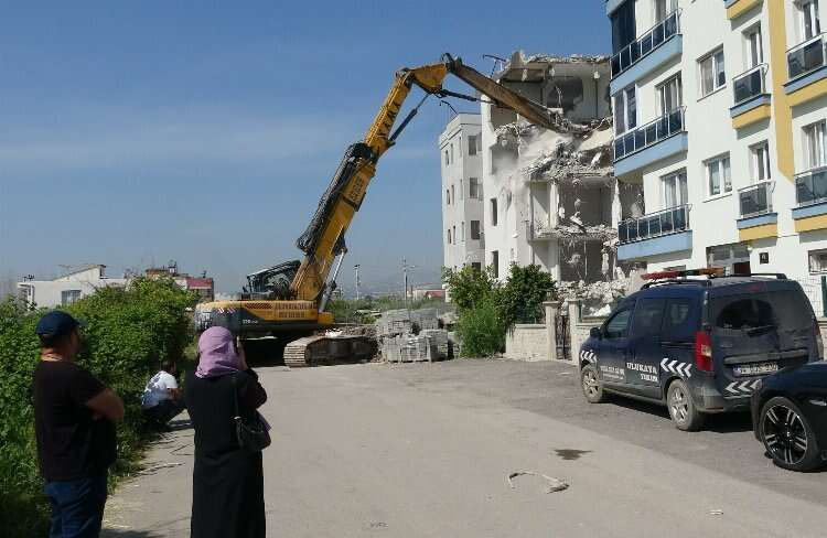 Ekiplerin incelemesinden sonra temelin izinsiz olarak kazılmasından kaynaklı yan yatmanın meydana geldiği belirtilerek, bina mühürlendi. Mühürlenme sonrasında belediye tarafından binanın yıkılması kararlaştırılarak, ilgili firmaya bildirildi. Zabıta ekipleri eşliğinde belediye birimlerinin son incelemeyi yapmasının ardından bugün binanın yıkımına başlandı. İş makinesi ile önce balkonlar ardından da üst katların diğer kısımları makaslandı. Makaslama sonrası binanın duvarlarının yıkılmasına geçildi. Yıkımın 2 veya 3 gün sürmesinin beklendiği belirtildi.