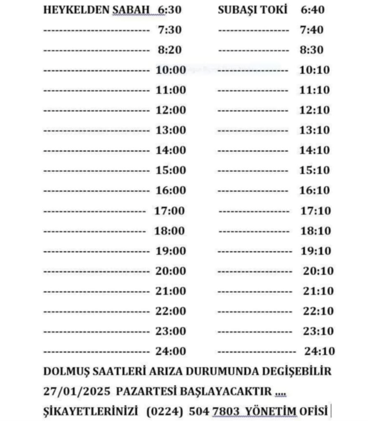 Özel, açıklamasında, daha önce günde yalnızca 5 sefer yapılan dolmuş seferlerinin, yeni düzenlemeyle her saat başı yapılmaya başlanmasının büyük bir kolaylık sağlayacağını vurguladı. "Subaşı Mahallesi halkına ve TOKİ sakinlerimize hayırlı uğurlu olsun" diyerek, vatandaşların daha konforlu bir ulaşım deneyimi yaşamasını hedeflediklerini ifade etti.