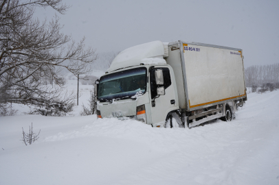 Yoğun kar yağışı nedeniyle araçlar yolda mahsur kaldı