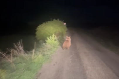Yolda karşılaştığı ayıyı aracıyla kovaladı