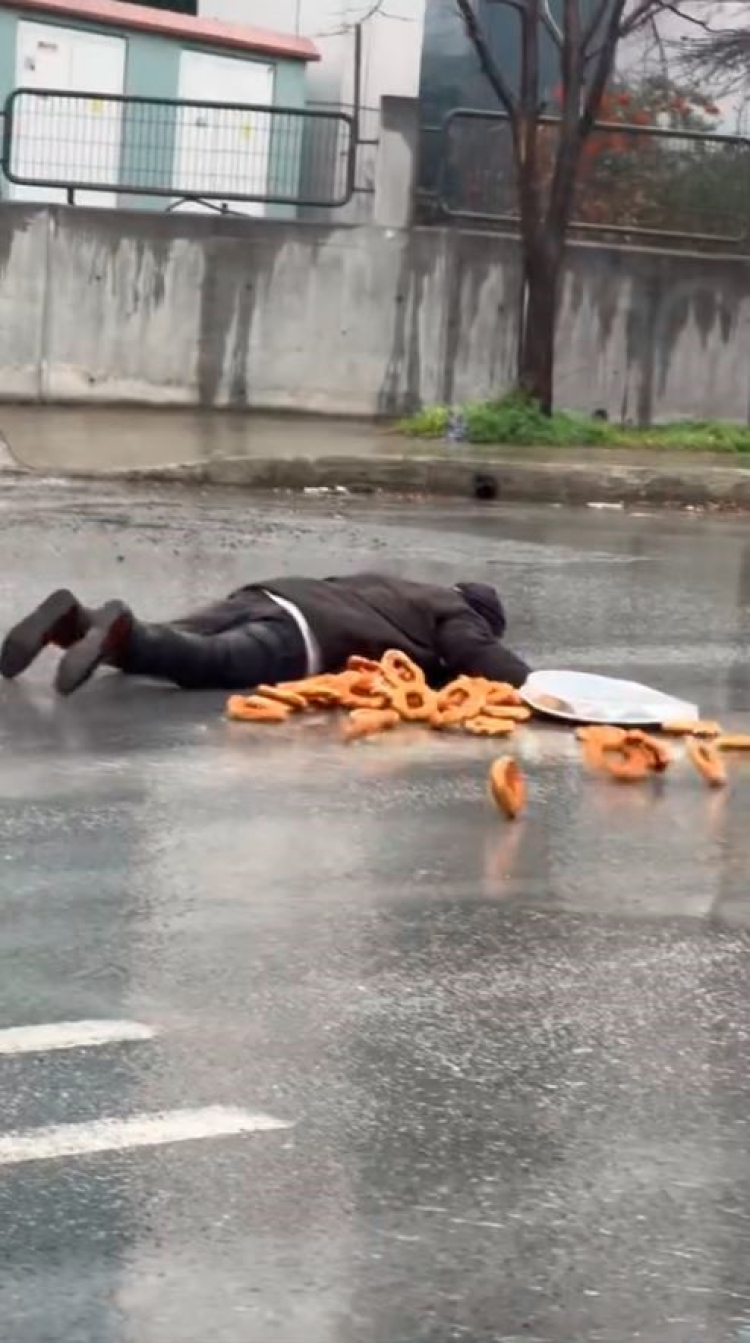 Esenyurt'ta çeşitli noktaları kendine mesken edinen simit tepsisi ile dolaşan bir şahıs, bir anda kendini yere atarak bayılma numarası yaptı. Duygu sömürüsü yapan şahıs, kendini bir anda yere atarken tepsisinde taşıdığı simitler yere saçıldı. Bayılma numarası yapan şahsın o anları çevredeki vatandaşların cep telefonu ile görüntülendi.