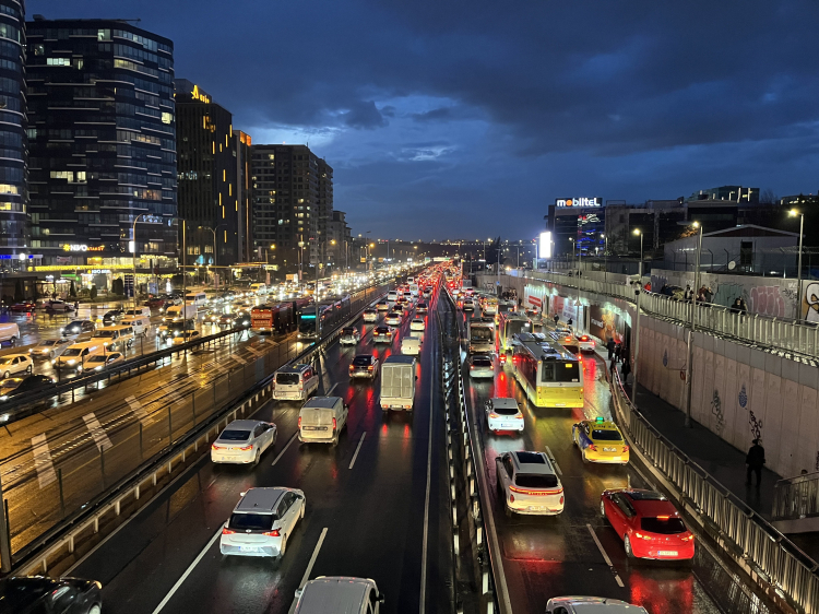 İstanbul’da haftanın ilk günü trafik yoğunluğu akşam iş çıkış saatlerinde yağmurun da etkisiyle arttı. Yağışın da etkisiyle artan trafikte araçlar ilerlemekte güçlük çekti. İstanbul Büyükşehir Belediyesi Trafik Yoğunluğu Haritası verilerine göre trafik yoğunluğu yüzde 83 olarak ölçüldü. Yenibosna D-100 Karayolu’nda trafik zaman zaman durma noktasına geldi. İşlerinden ve okullarından dönen vatandaşlar evlerine gitmekte zorluk yaşadı.