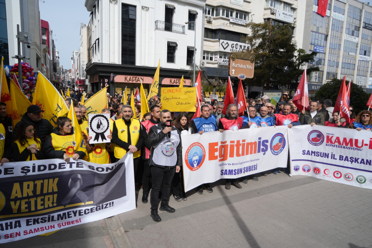 İstanbul'da öğrencisi tarafından uğradığı bıçaklı saldırı sonucu hayatını kaybeden öğretmen için Samsun'da sendikalar basın açıklaması düzenledi.