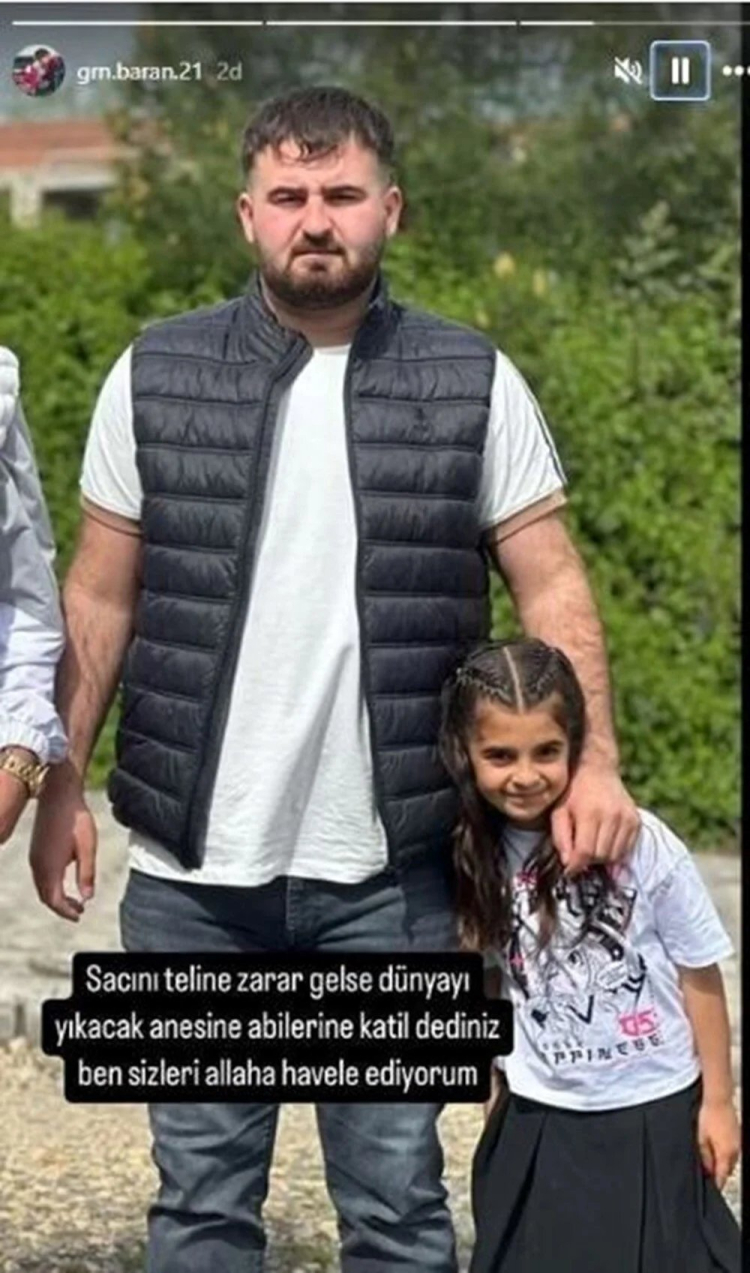 Diyarbakır'ın Bağlar ilçesi Tavşantepe Mahallesi'nde, kaybolduktan 18 gün sonra ölü bulunan sekiz yaşındaki Narin Güran cinayetinde tutuklu olmayan tek ağabey Baran Güran, sosyal medyasında tutuklu annesi Yüksel Güran, kardeşi Enes Güran ve Narin Güran'ın yer aldığı paylaşımlar yaptı.