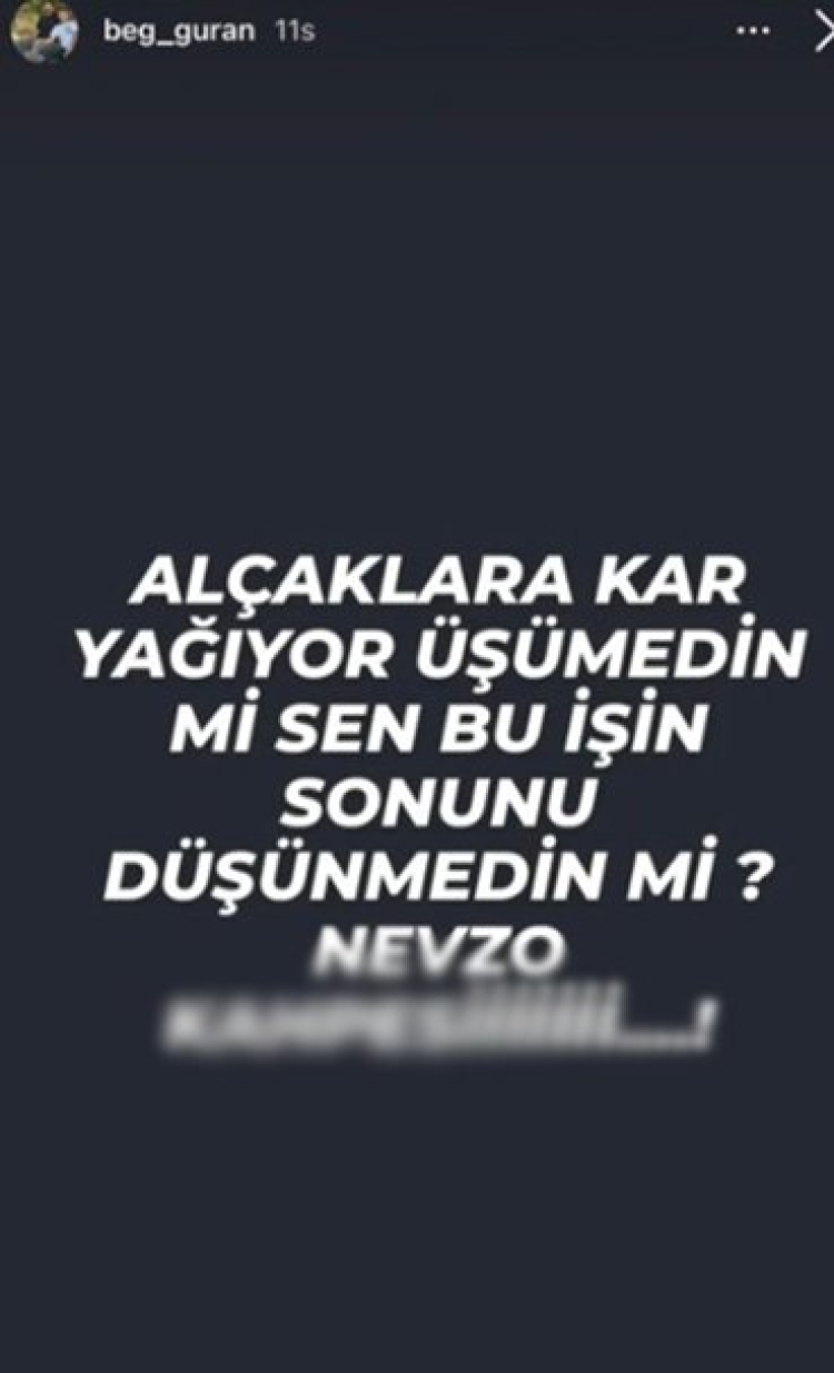 Amca Salim Güran'ın oğlu Devran Güran'ın sosyal medya üzerinden yaptığı tehdit içerikli paylaşım büyük tepki topladı. Devran Güran, paylaşımında Nevzat Bahtiyar’ı hedef alarak, “ALÇAKLARA KAR YAĞIYOR ÜŞÜMEDİN Mİ SEN BU İŞİN SONUNU DÜŞÜNMEDİN Mİ? NEVZO K........!” ifadelerine yer verdi.