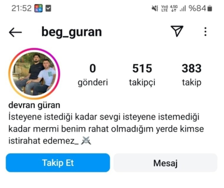 Bu tehdidin ortaya çıkmasıyla kamuoyunda geniş yankı uyandıran paylaşım sonrası, Devran Güran’ın sosyal medya hesabını kapattı...