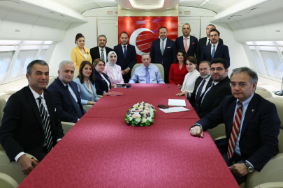 Erdoğan, Kazakistan dönüşü uçakta gazetecilerin sorularını cevaplandırdı. Astana’da düzenlenen Şanghay İşbirliği Örgütü 24'üncü Devlet Başkanları Zirvesi'ne katıldıklarını belirten Erdoğan, "Malumunuz zirveye Kazakistan Cumhurbaşkanı Kasım Cömert Tokayev’in davetine icabetle şeref konuğu olarak katıldık. 2022 yılında Özbekistan’da yapılan Liderler Zirvesi’ne de özel misafir sıfatıyla katılmıştım. Türkiye 2012 yılından bu yana Teşkilat’ın diyalog ortağıdır. Bu çerçevede iştirak ettiğimiz zirveye davetli diğer ülkelerin de katılımıyla bugün gerçekleştirilen oturumda hitap ettik. 'Sürdürülebilir barış ve kalkınma arayışında çok taraflı diyaloğun güçlendirilmesi' teması altında düzenlenen oturumda cari küresel meydan okumalar bağlamında görüş alışverişinde bulunduk. Hitabımda Gazze başta olmak üzere coğrafyamızı tehdit eden sınamalara karşı çok taraflı diyaloğa, iş birliğine ve dayanışmaya duyulan ihtiyacın önemini vurguladım. Güçlünün haklı olduğu değil, haklının güçlü olduğu bir uluslararası sistemin inşa edilmesi için çalıştığımızın altını çizdim. Bu vesileyle ekonomi, enerji, bağlantısallık ve güvenlik konularında ikili ve çoklu iş birliği fırsatlarını gözden geçirdik. Terörizm, İslam ve yabancı düşmanlığı, düzensiz göç, iklim değişikliğine dair başlıklara dikkat çektim. PKK/PYD/YPG, FETÖ ve DEAŞ gibi terör örgütleriyle mücadelemizde Teşkilat üyeleriyle iş birliğimizi artırmakta fayda gördüğümüzü aktardım. Gazze’deki yıkıma son verilmesi için İsrail’in durdurulması ve İsrail yönetimi üzerindeki uluslararası baskıların artırılması gerektiğine dair görüşlerimi paylaştım. Zirve, ülkemizin Teşkilat’a sağlayabileceği katkıları dile getirmek açısından da faydalı oldu" dedi.