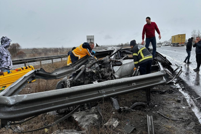 Bursa'da seyir halindeki tıra arkadan çarpan otomobil, sürücüsünün kontrolünden çıkarak bariyerlere çarptı.