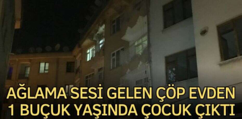 Ağlama sesi gelen çöp evden 1 buçuk yaşında çocuk çıktı