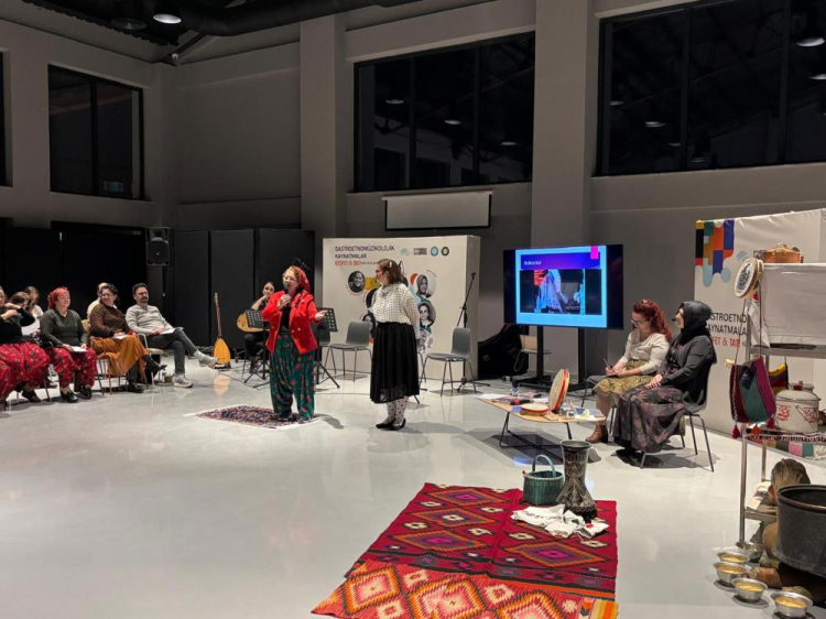 Programda Anadolu’da baharın gelişini simgeleyen Nevruz kutlamaları, Çiğdem Pilavı geleneği, saya gezmeleri ve marteniçka ritüelleri müzik ve yemek kültürü çerçevesinde ele alındı. Bu geleneklerin toplumsal cinsiyet rolleriyle ilişkisi ve kadınların kültürel mirası kuşaktan kuşağa aktarmadaki rolü vurgulandı.Ayrıca, gıda saklama kültürü ve ev içi üretim süreçlerinde kadın emeğinin tarihsel gelişimi de değerlendirildi. İnkalardan Antik Mısır’a uzanan örneklerle besin saklama yöntemlerinin geçmişten günümüze değişimi aktarıldı.