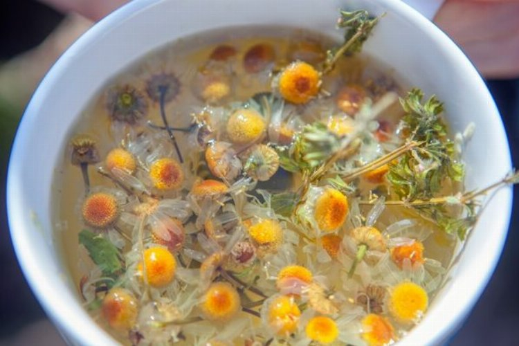 - Birkaç papatya çiçeğini kaynar suya ekleyip demleyin.