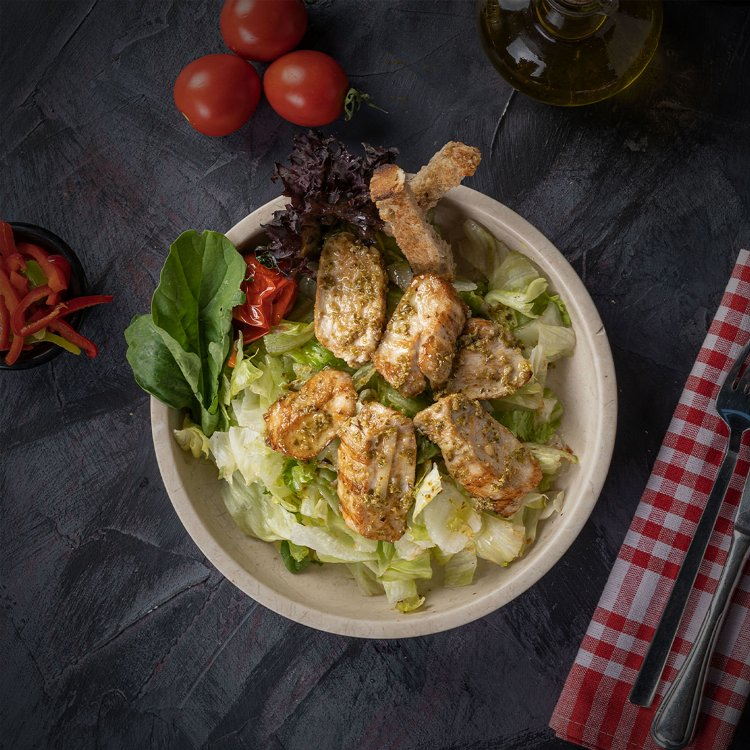 Pesto Soslu Tavuk Salatası: Tavuk, yeşillikler ve pesto sosuyla hazırlanan bu salata, lezzetli ve doyurucu bir öğün sunar.