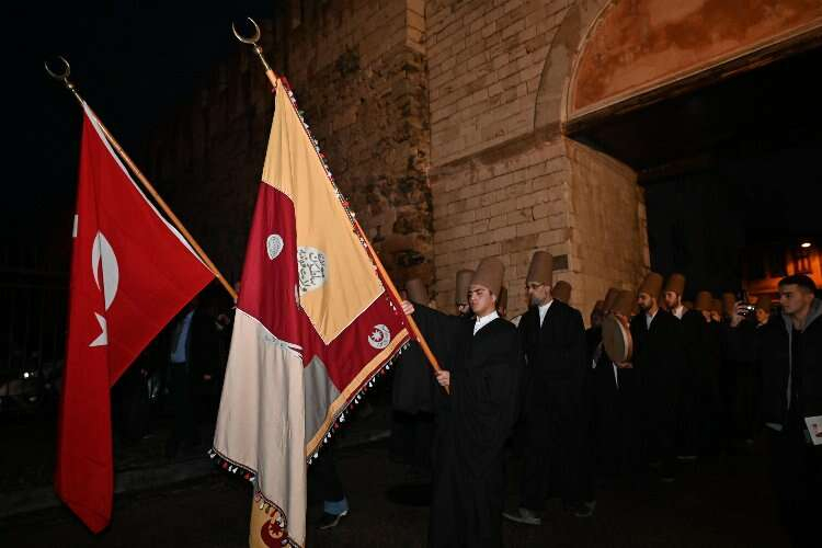 Bursa Büyükşehir Belediyesi tarafından Mevlana Celaleddin-i Rumi'nin 750’inci vuslat yıldönümü münasebetiyle hazırlanan ‘Şeb-i Arus töreni, Üftade Tekkesi ve Camii önünden Mevlevi Alayı yürüyüşü ile başladı.