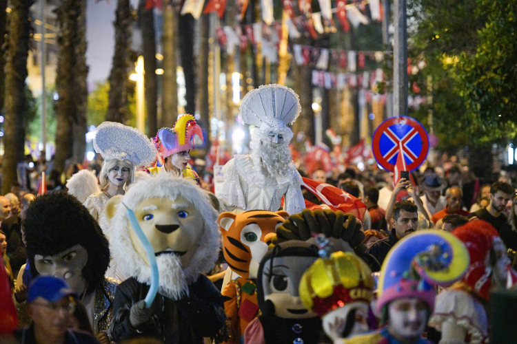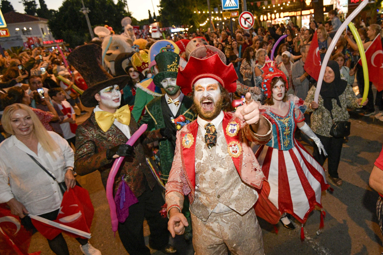 Tahtabacaklar, ateş sihirbazları ve jonglörler rengarenk kostümleriyle bando eşliğinde kent sakinlerini karşılarken Kaleiçi sokaklarını adeta bir masal karnavalına dönüştürdü.